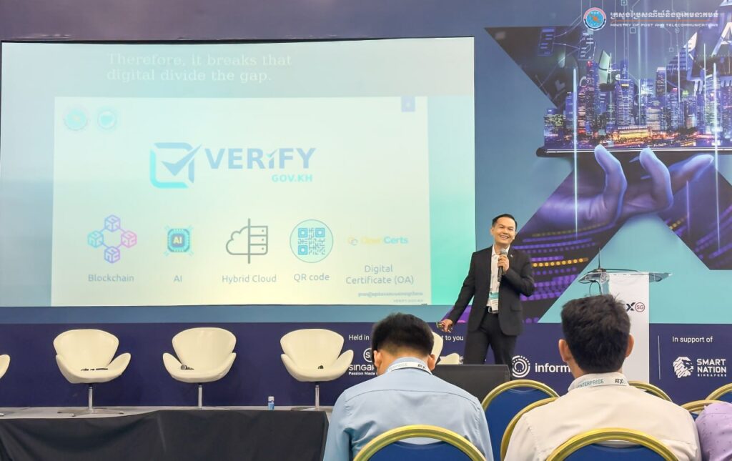 Meanwhile, during ATxEnterprise, His Excellency Cheang Vutha, Deputy Secretary General of the General Secretariat of the Digital Government Committee, delivered a presentation on Cambodia’s digital transformation journey and the government document verification platform, verify.gov.kh.