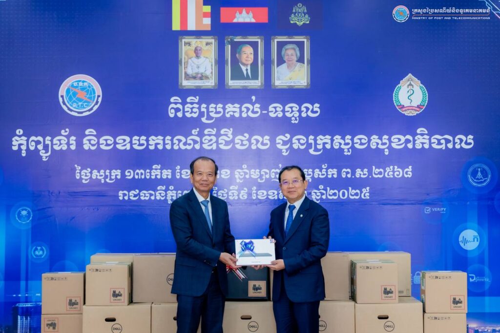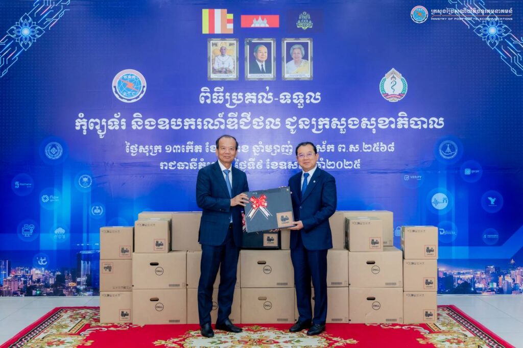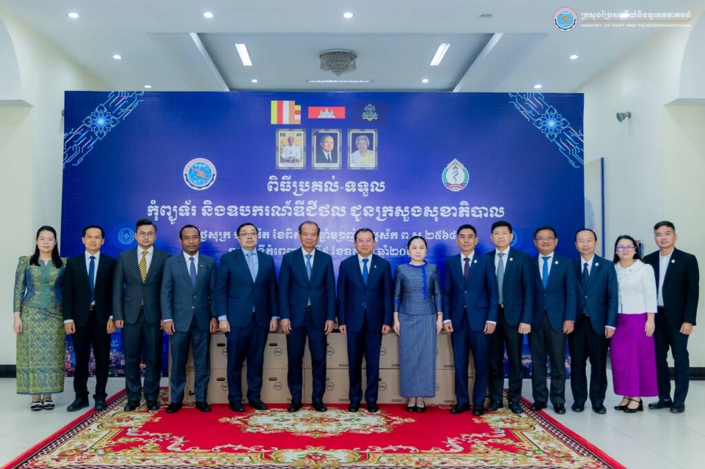 The Ministry of Post and Telecommunications handed over computers and digital equipment to the Ministry of Health to support its digital transformation efforts and institutional modernization. The handover ceremony was presided over by His Excellency Chea Vandeth, Minister of Post and Telecommunications, and His Excellency Professor Chheang Ra, Minister of Health, and held at the Ministry of Post and Telecommunications.