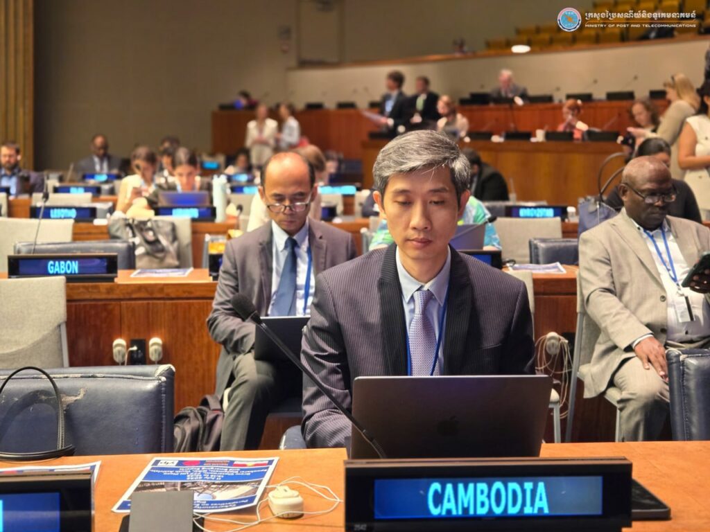 USA, from July 7 to 11, 2025— His Excellency Ung Sokoudom, Advisor to the Ministry of Post and Telecommunications (MPTC), led the Cambodian delegation—comprising technical officials from the MPTC and the Ministry of Foreign Affairs and International Cooperation—to participate in the Eleventh and Final Substantive Session of the Open-Ended Working Group (OEWG) on ICTs Security, held at the United Nations Headquarters in New York City. The participation of the Cambodian delegation was coordinated by the Permanent Mission of the Kingdom of Cambodia to the UN.