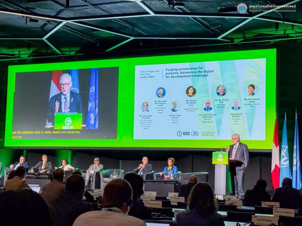 Geneva—On July 8, 2025, His Excellency Chea Vandeth, Minister of Post and Telecommunications (MPTC), led a delegation comprising MPTC officials and the Telecommunications Regulator of Cambodia to participate in the AI for Good Global Summit 2025, held alongside the World Summit on the Information Society +20 High-Level Event 2025 (WSIS+20 High-Level Event 2025) in Geneva, Switzerland.