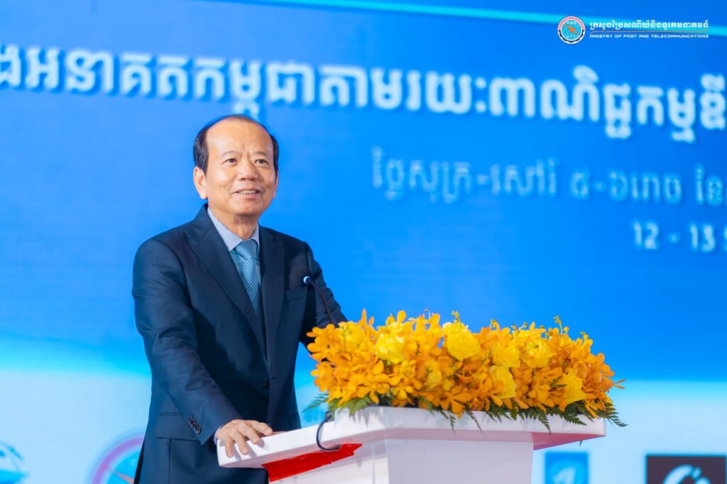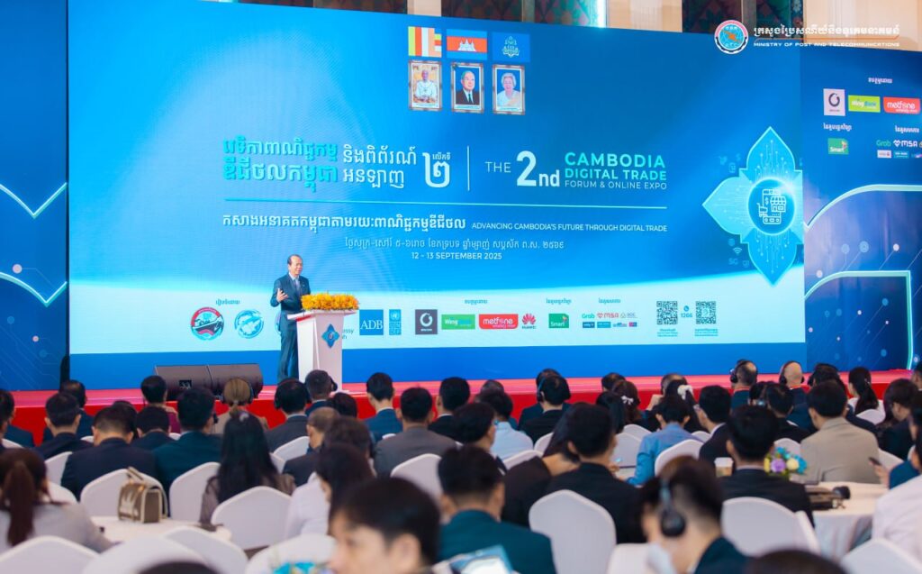 Phnom Penh— On the morning of September 13, 2025, His Excellency Chea Vandeth, Minister of Post and Telecommunications (MPTC), delivered the keynote remark at the 2nd Cambodia Digital Trade Forum and Online Expo under the theme “Building a Smart and Secure Digital Cambodia: Youth, Innovation, and Trust in the Age of AI,” held at Koh Pich City Hall, Phnom Penh. The event was attended by Her Excellency Chea Ratha, Secretary of State and representative of Her Excellency Cham Nimul, Minister of Commerce; representatives from the United Nations Development Programme (UNDP), the Asian Development Bank (ADB), and Zen.com; leaders and senior officials of the MPTC; and officials from other government ministries and institutions, researchers, the education sector, and the private sector—bringing together approximately 300 participants.