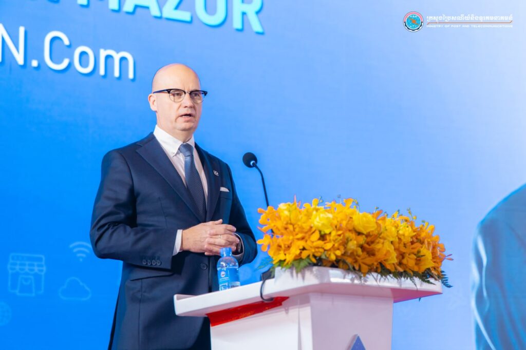 In his keynote remarks, H.E. Minister stated that “trust” is the essential ingredient for the growth of digital trade. Without trust, buyers and sellers would not feel confident engaging in digital transactions. To address this, the Royal Government has been focusing on building a secure and reliable digital ecosystem by drafting key laws and policies that serve as safeguards for businesses, consumers, and the public sector. He further highlighted the official implementation of various digital government products, particularly verify.gov.kh, which is a powerful platform designed to facilitate public service delivery by enabling citizens to securely request, receive, and utilize services online. Backed by blockchain technology, this platform enhances digital trust and establishes a strong foundation for Cambodia’s digital business environment.